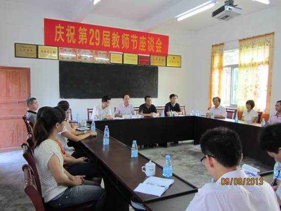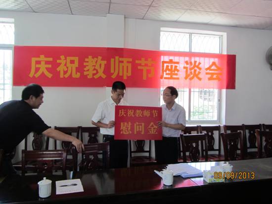 黄副县长一行首先来到茶背中学,在察看了校容校貌后召开了教师节座谈会。座谈会上,听取了学校领导的办学情况汇报和教师代表的发言后,黄副县长作了讲话。黄副县长首先代表县委县政府对教师们表示节日的祝福和亲切的问候。同时肯定了茶背中学这几年来办学出了成绩,学校管理到位,校园环境整洁干净,是学校领导班子带领全体教师同心同德积极奉献的结果。希望学校以这次教育工作会议为契机,再接再厉,再创佳绩。黄副县长还了解了茶背中学的教师情况,提议在适当的时候,以种名贵树木的形式,来纪念教师们的默默奉献。最后黄副县长代表县委县政府为茶背中学教师送上了教师节慰问金。